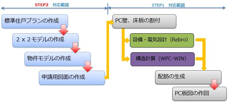 2020年に入ってから、大成ユーレックと構造計画研究所は意匠設計を中心とした専用機能を開発する「STEP2」に着手。意匠設計の段階でのモデリング支援機能を拡充し、物件モデルをつくることで、STEP1で開発したPC板図支援機能を活用してPC板図の作成まで一気通貫で行うことが可能となったのだ。