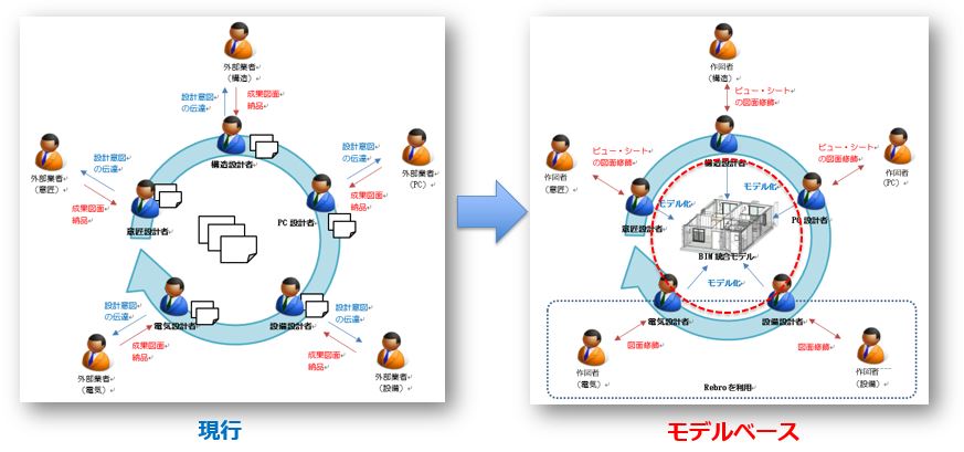 その後、グランドデザインを検討し、要望や課題を構造計画研究所が見える化し、図面を中心とした作業フローからモデルベースの作業フローへの変革を目指した全体構想を構築した。